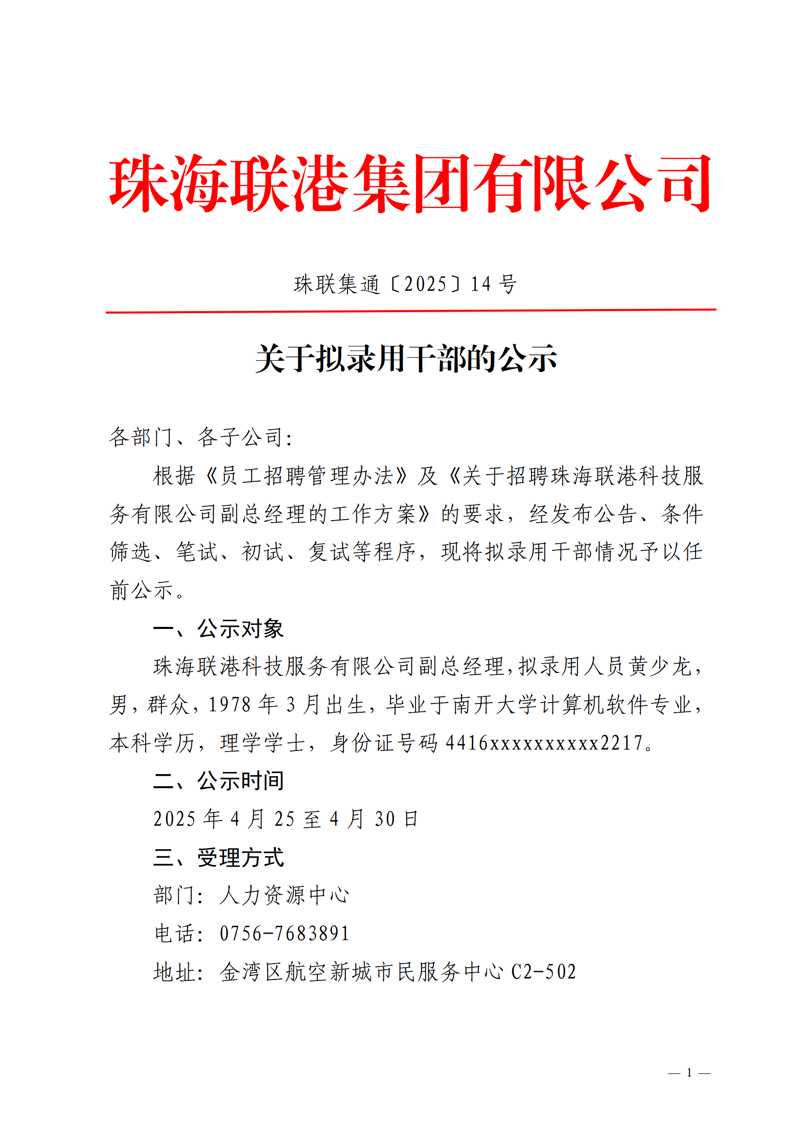 珠聯(lián)集通〔2025〕14號 關于擬錄用干部的公示
